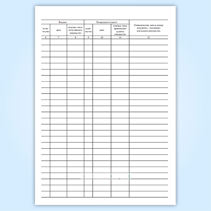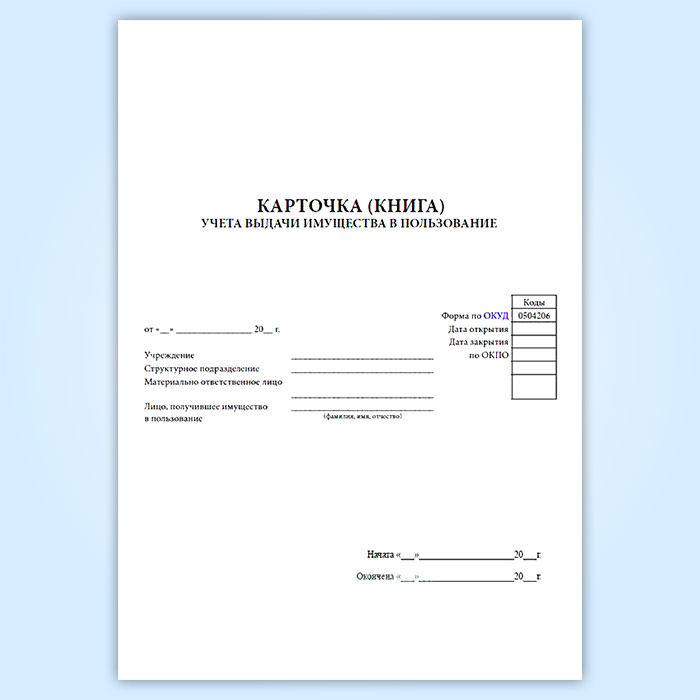 Карточка (книга) учета выдачи имущества в пользование (форма по ОКУД 0504206) в Фрязино купить