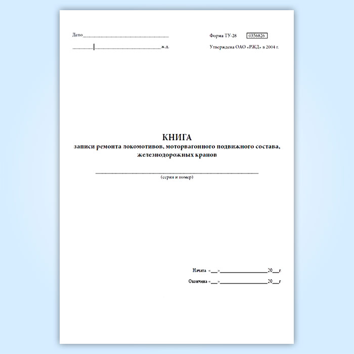 Книга записи ремонта локомотивов, моторвагонного подвижного состава железнодорожных кранов (ТУ-28) в Фрязино купить