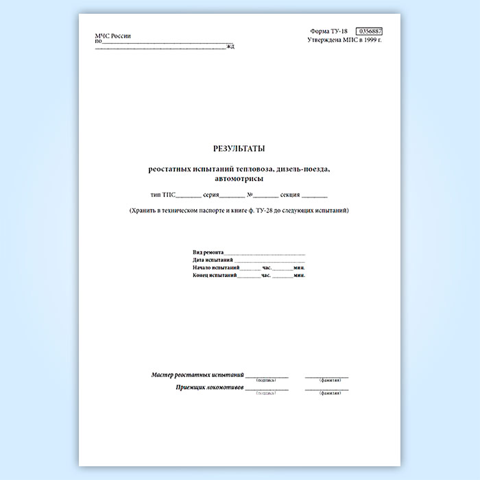 Результаты реостатных испытаний тепловоза, дизель-поезда, автомотрисы (форма ТУ-148) в Фрязино купить