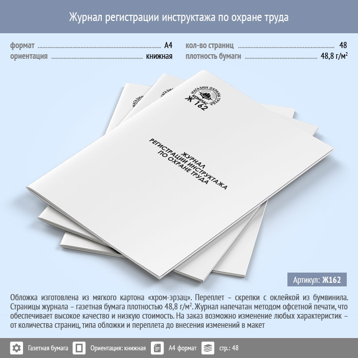 Журнал регистрации инструктажа по охране труда (48 стр., Ж162) в Фрязино купить