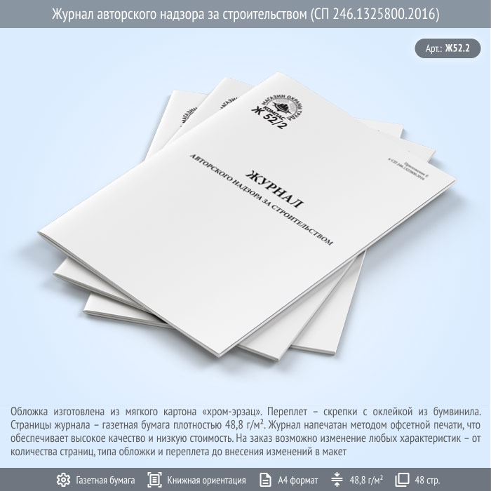 Журнал авторского надзора за строительством (СП 246.1325800.2016) (48 стр., Ж52.2) в Фрязино купить