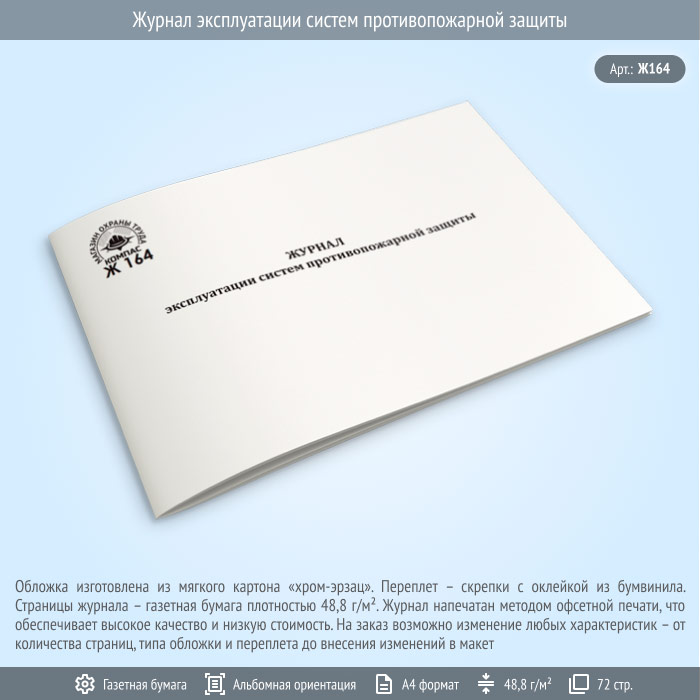 Журнал эксплуатации систем противопожарной защиты (72 стр., Ж164) в Фрязино купить