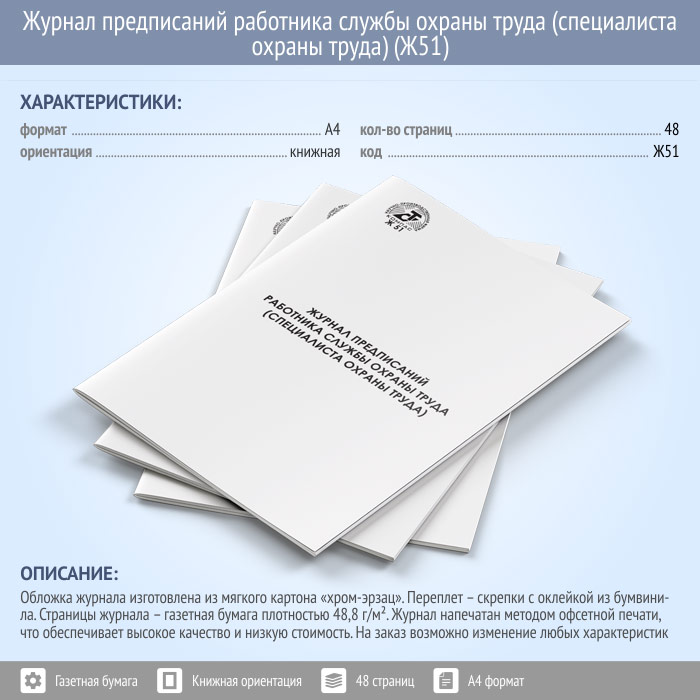 Журнал предписаний работника службы охраны труда (специалиста охраны труда, 48 стр., Ж51) в Фрязино купить