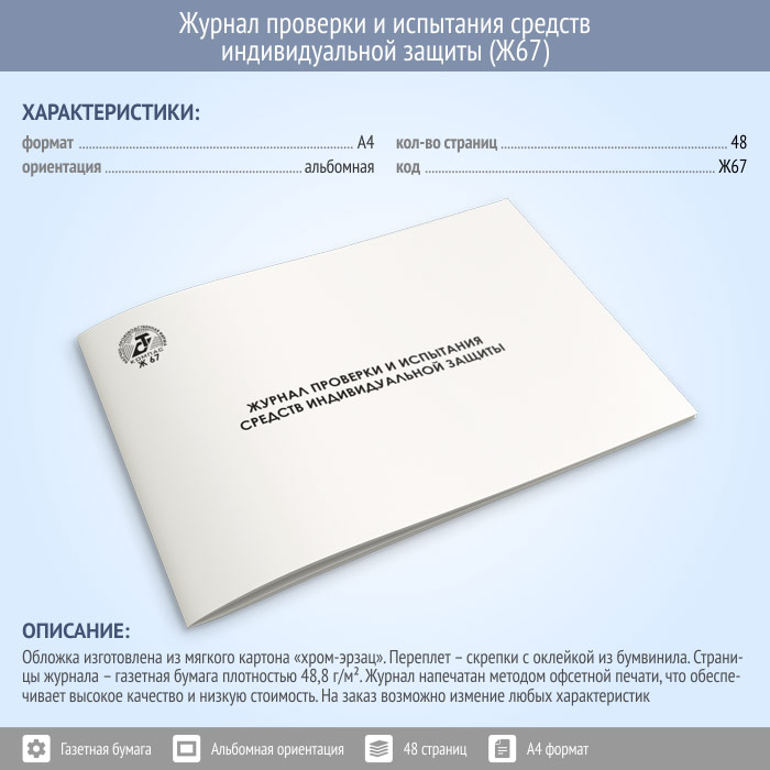 Журнал проверки и испытания средств индивидуальной защиты (48 стр., Ж67) в Фрязино купить