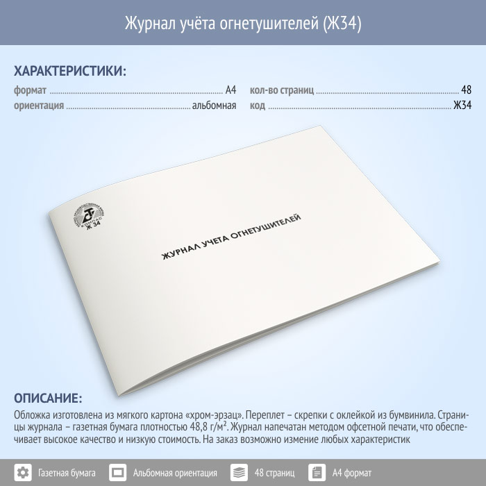 Журнал учета огнетушителей (48 стр., Ж34) в Фрязино купить