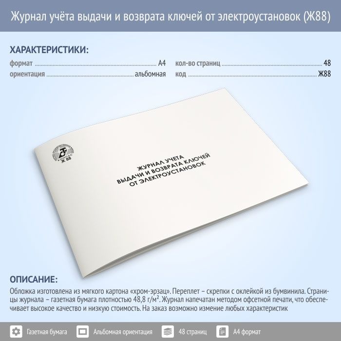 Журнал учета выдачи и возврата ключей от электроустановок (48 стр., Ж88) в Фрязино купить
