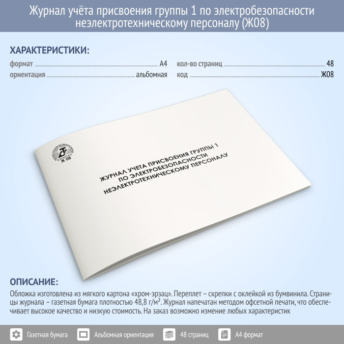 Журнал учета присвоения группы 1 по электробезопасности неэлектротехническому персоналу (48 стр., Ж08) в Фрязино купить