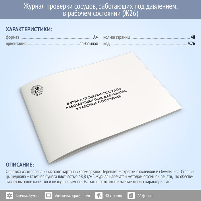 Журнал проверки сосудов, работающих под давлением в рабочем состоянии (48 стр., Ж26) в Фрязино купить