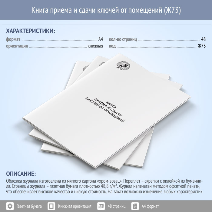Книга приема и сдачи ключей от помещений (48 стр., Ж73) в Фрязино купить