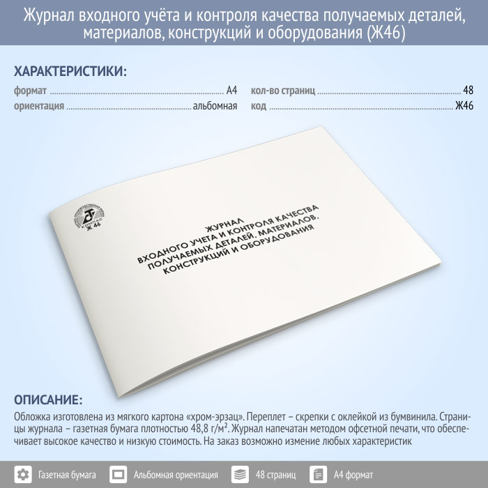 Журнал входного учета и контроля качества получаемых деталей, материалов, конструкций и оборудования (48 стр., Ж46) в Фрязино купить