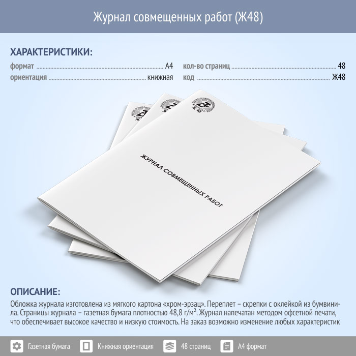 Журнал совмещенных работ (48 стр., Ж48) в Фрязино купить
