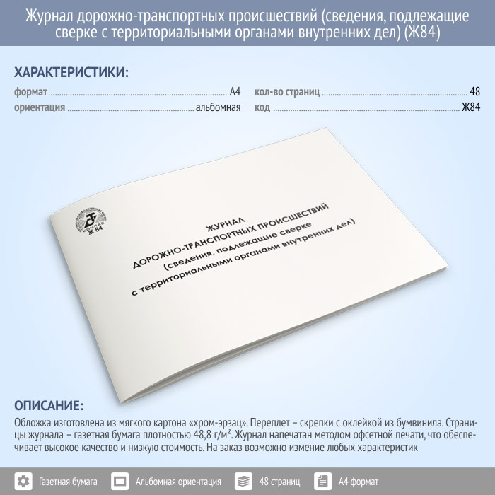 Журнал дорожно-транспортных происшествий (сведения, подлежащие сверке с территориальными органами внутренних дел) (48 стр., Ж84) в Фрязино купить