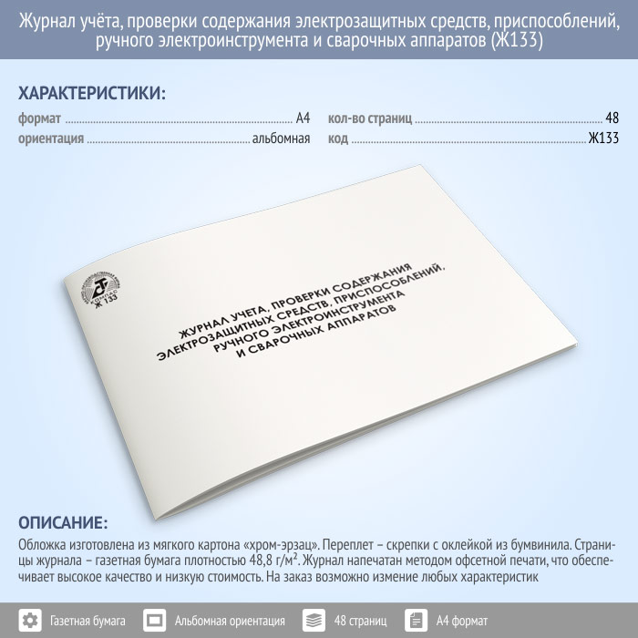 Журнал учета проверки и содержания электрозащитных средств, приспособлений, ручного электроинструмента и сварочных аппаратов (48 стр., Ж133) в Фрязино купить
