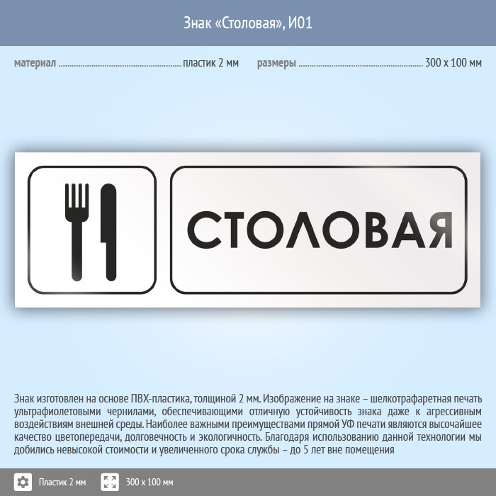 Знак «Столовая», И01 (пластик, 300х100 мм) в Фрязино купить
