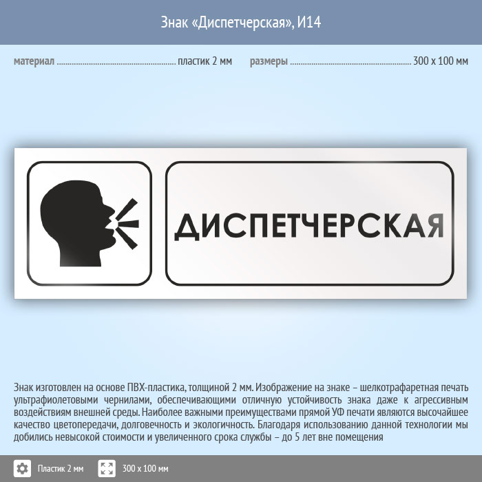 Знак «Диспетчерская», И14 (пластик, 300х100 мм) в Фрязино купить