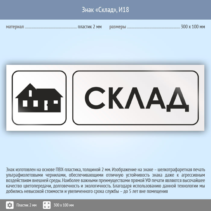 Знак «Склад», И18 (пластик, 300х100 мм) в Фрязино купить