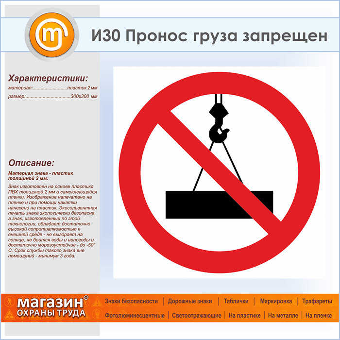 Знак «Пронос груза запрещен», И30 (пластик, 300х300 мм) в Фрязино купить