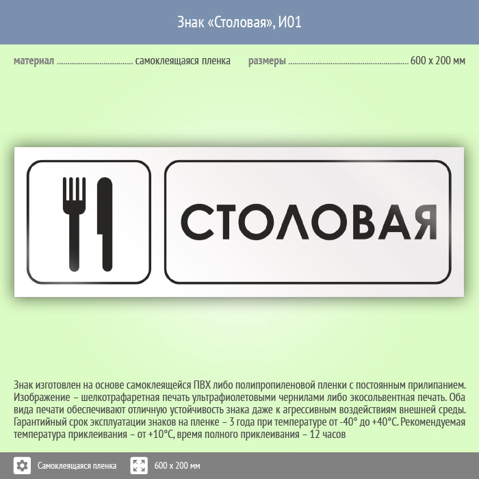Знак «Столовая», И01 (пленка, 600х200 мм) в Фрязино купить