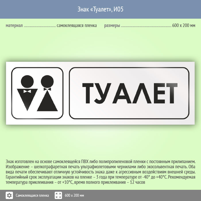 Знак «Туалет», И05 (пленка, 600х200 мм) в Фрязино купить