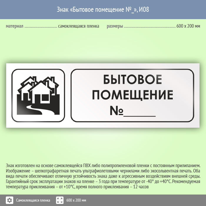 Знак «Бытовое помещение №_», И08 (пленка, 600х200 мм) в Фрязино купить