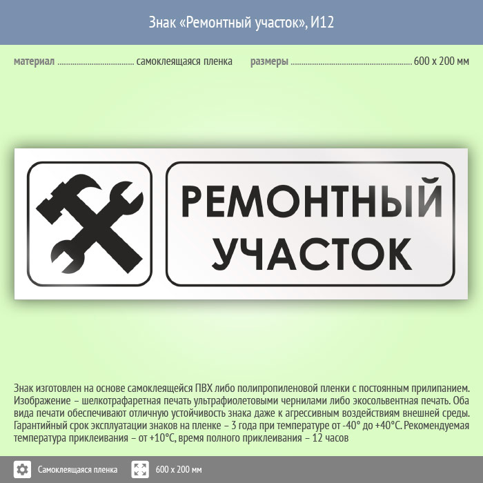 Знак «Ремонтный участок», И12 (пленка, 600х200 мм) в Фрязино купить