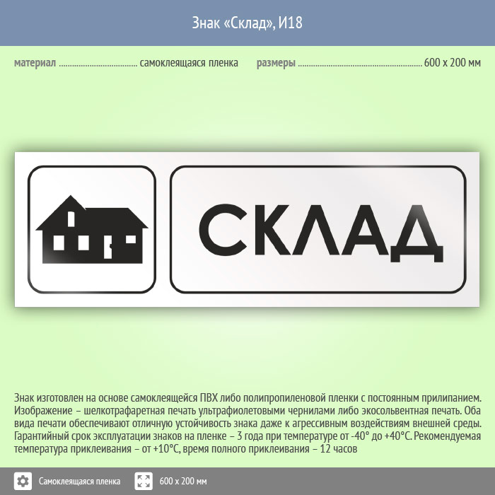 Знак «Склад», И18 (пленка, 600х200 мм) в Фрязино купить