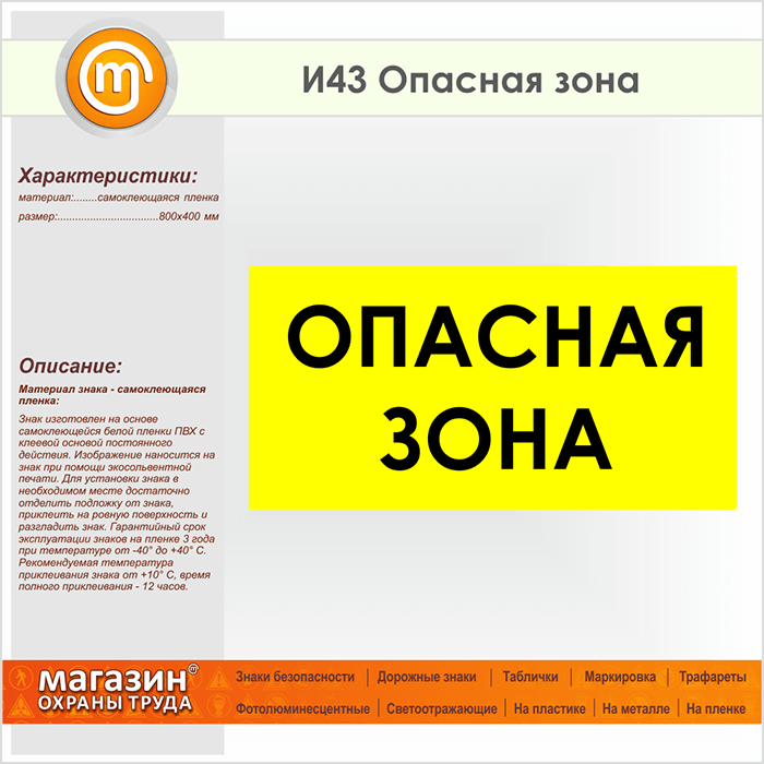Знак «Опасная зона», И43 (пленка, 800х400 мм) в Фрязино купить