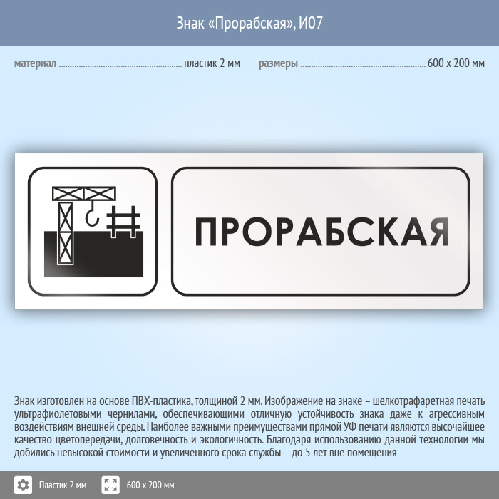 Знак «Прорабская», И07 (пластик, 600х200 мм) в Фрязино купить