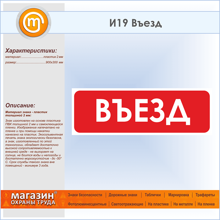 Знак «Въезд», И19 (пластик, 900х300 мм) в Фрязино купить
