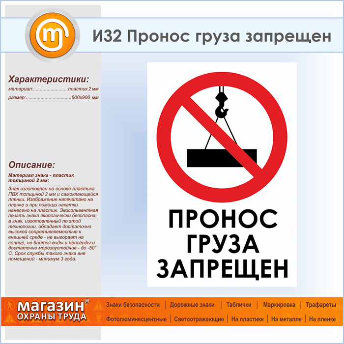 Знак «Пронос груза запрещен», И32 (пластик, 600х900 мм) в Фрязино купить