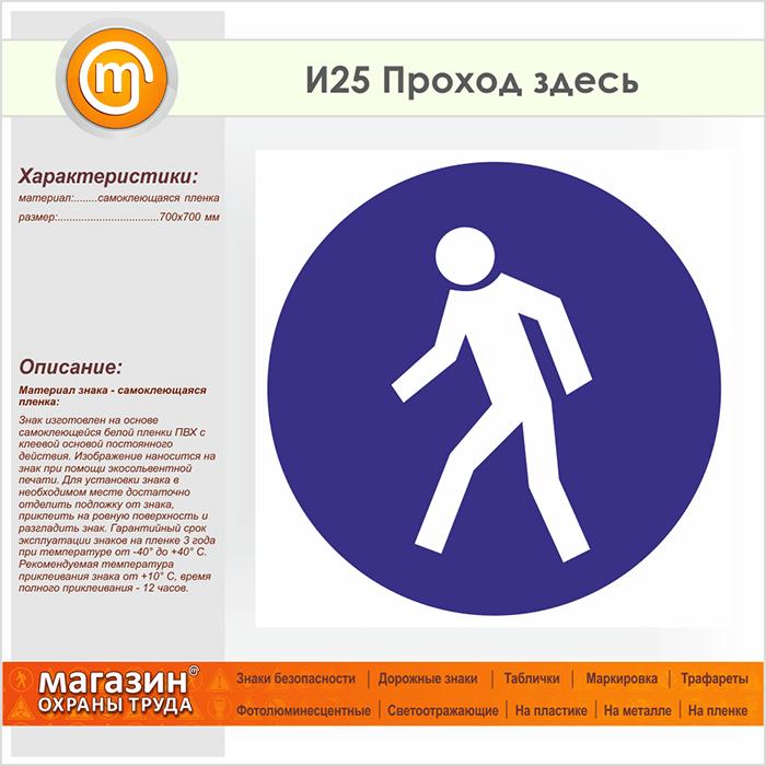 Знак «Проход здесь», И25 (пленка, 700х700 мм) в Фрязино купить
