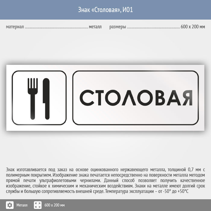 Знак «Столовая», И01 (металл, 600х200 мм) в Фрязино купить