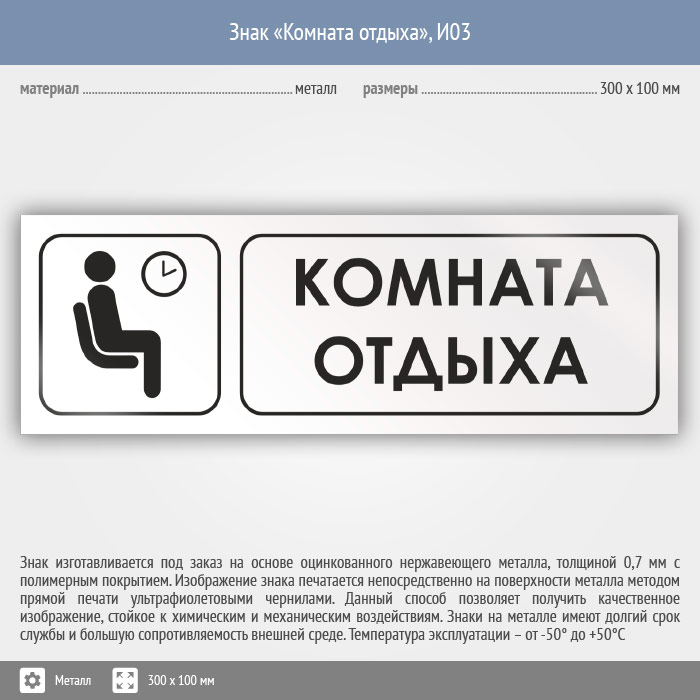 Знак «Комната отдыха», И03 (металл, 300х100 мм) в Фрязино купить