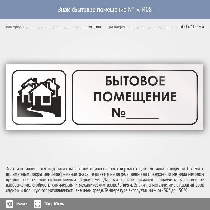 Знак «Бытовое помещение №_», И08 (металл, 300х100 мм) в Фрязино купить