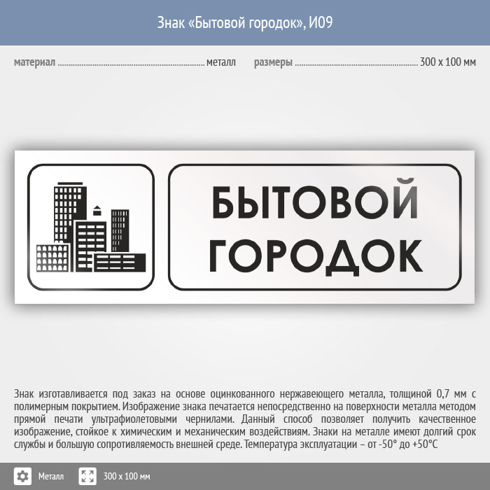 Знак «Бытовой городок», И09 (металл, 300х100 мм) в Фрязино купить