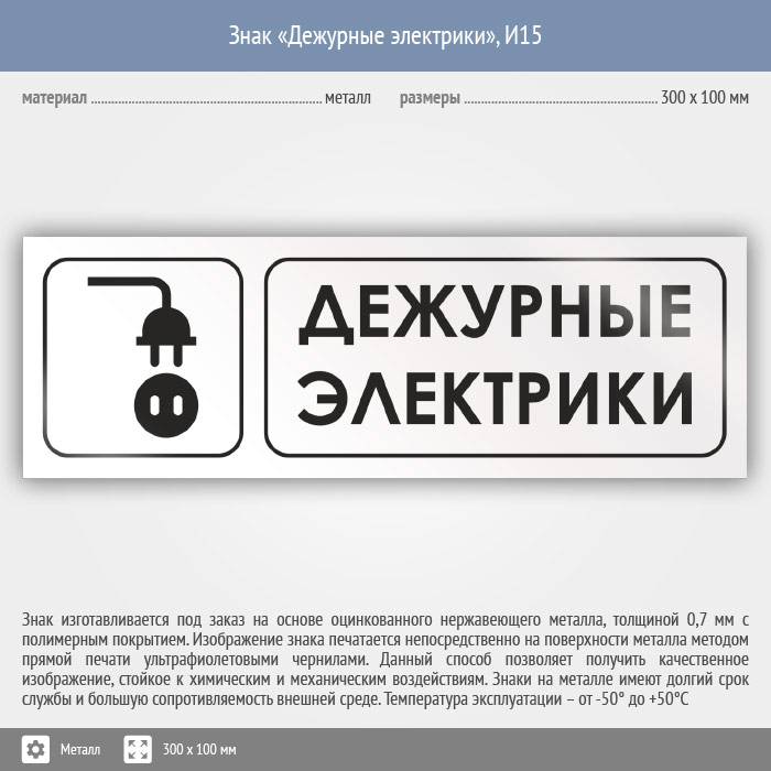 Знак «Дежурные электрики», И15 (металл, 300х100 мм) в Фрязино купить
