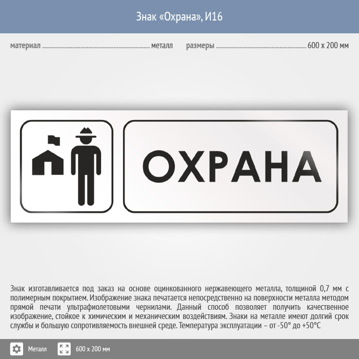 Знак «Охрана», И16 (металл, 600х200 мм) в Фрязино купить