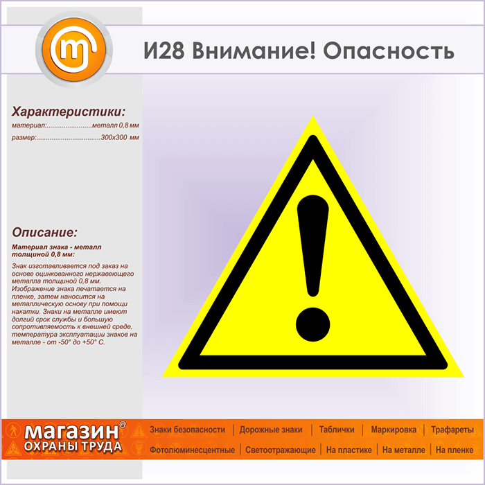 Знак «Внимание! Опасность», И28 (металл, сторона 300 мм) в Фрязино купить