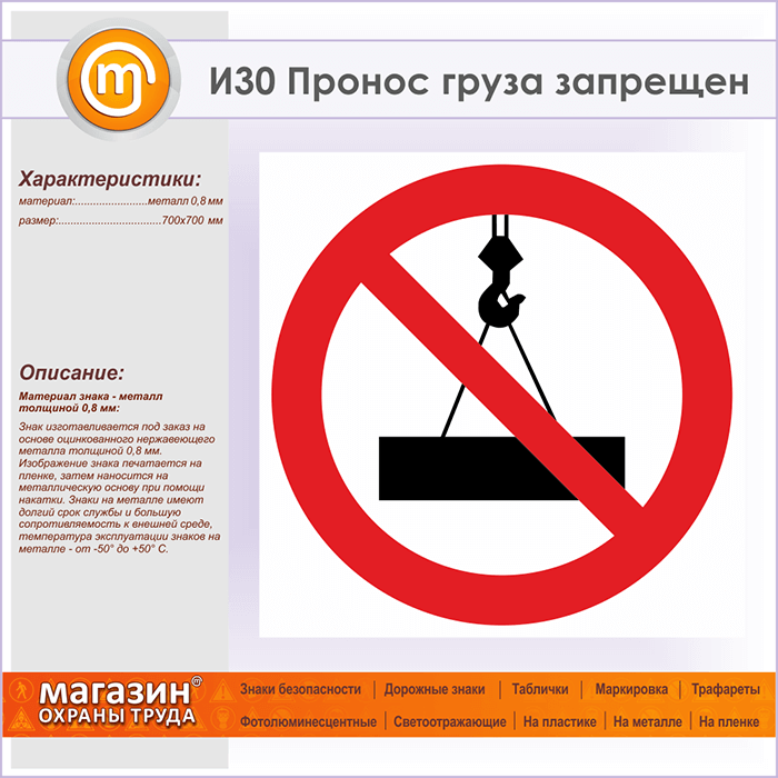 Знак «Пронос груза запрещен», И30 (металл, 700х700 мм) в Фрязино купить