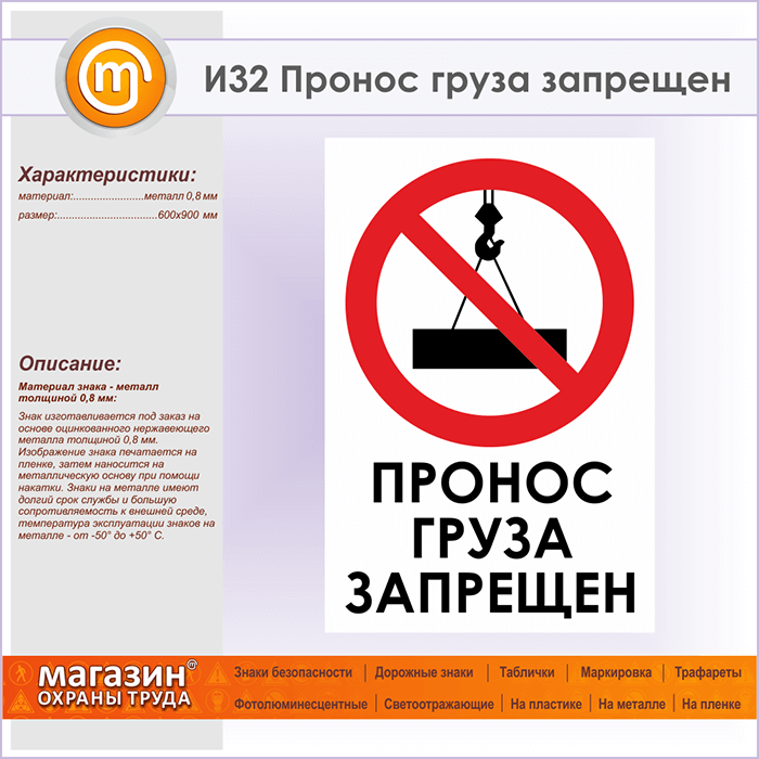 Знак «Пронос груза запрещен», И32 (металл, 600х900 мм) в Фрязино купить