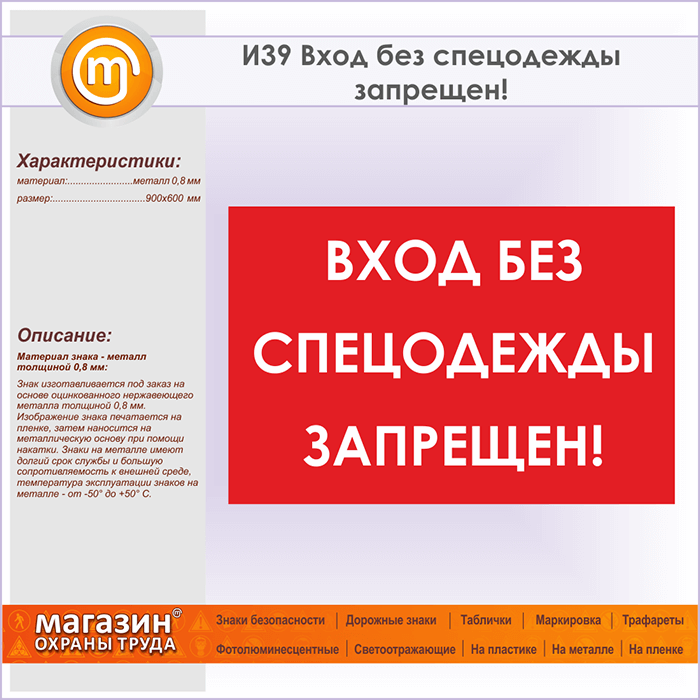 Знак «Вход без спецодежды запрещен!», И39 (металл, 900х600 мм) в Фрязино купить