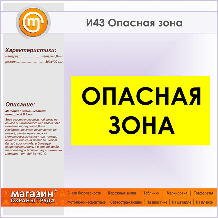 Знак «Опасная зона», И43 (металл, 800х400 мм) в Фрязино купить